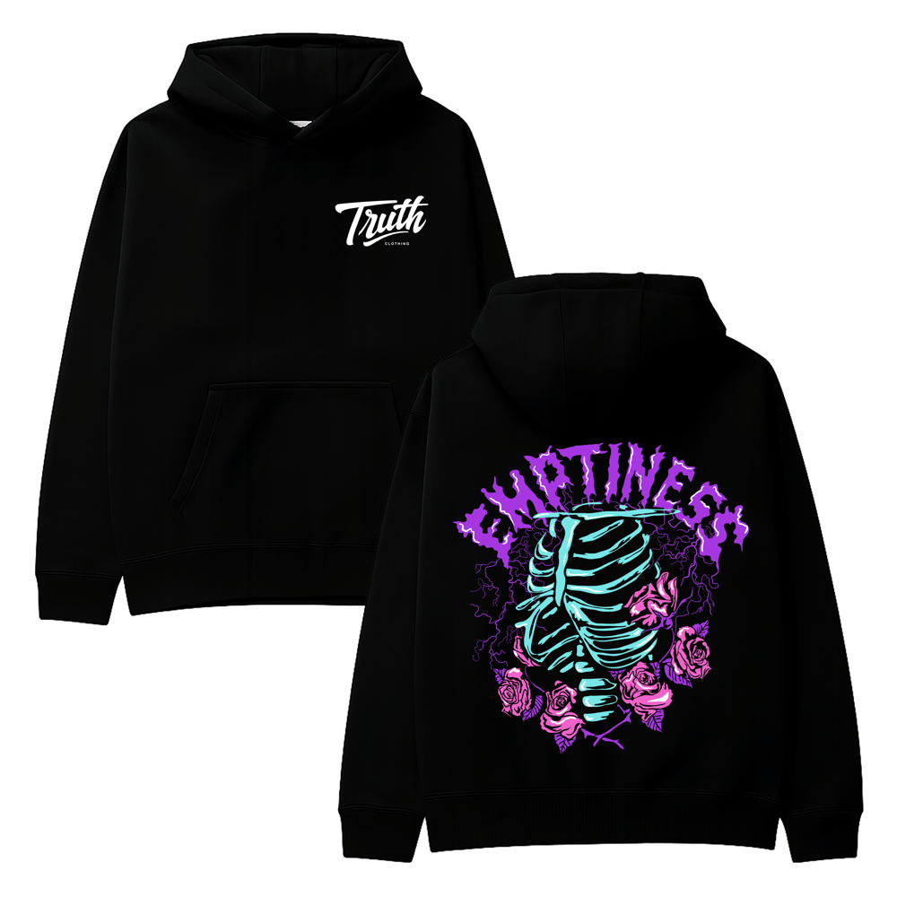 Our highly anticipated “Emptiness” design comes screen printed in Purple, Pink, Teal and White ink on a Black premium-quality hoodie. 💜🩷🩶