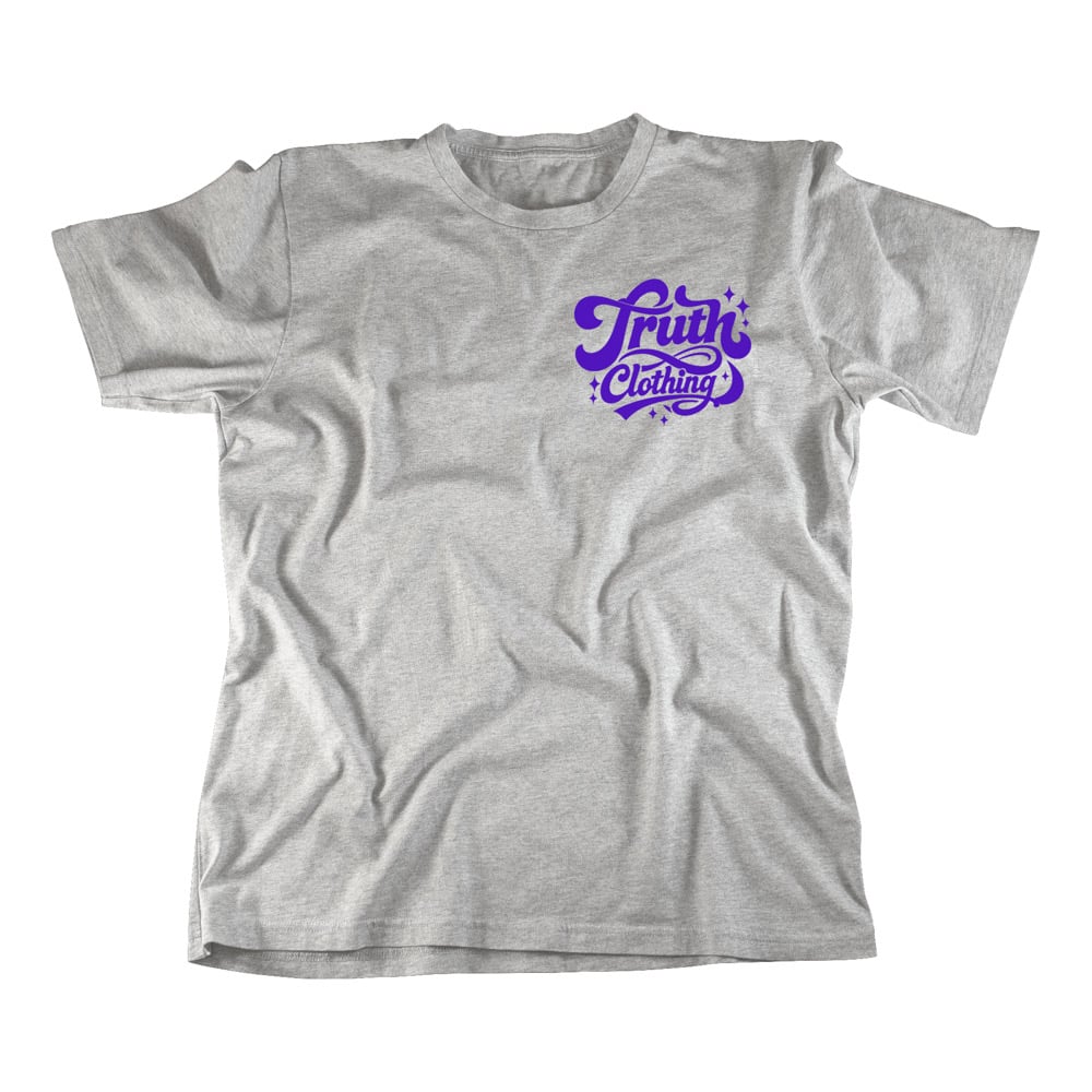 “Retro Truth” T Shirt | Heather Grey/Purple
